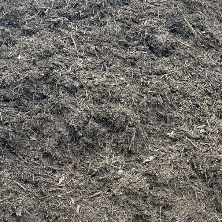 Eucy Mulch is a mixture of ground up wood material and organic matter. Particle sizes range from 1-15mm and average 6-10mm. It is dark in appearance.